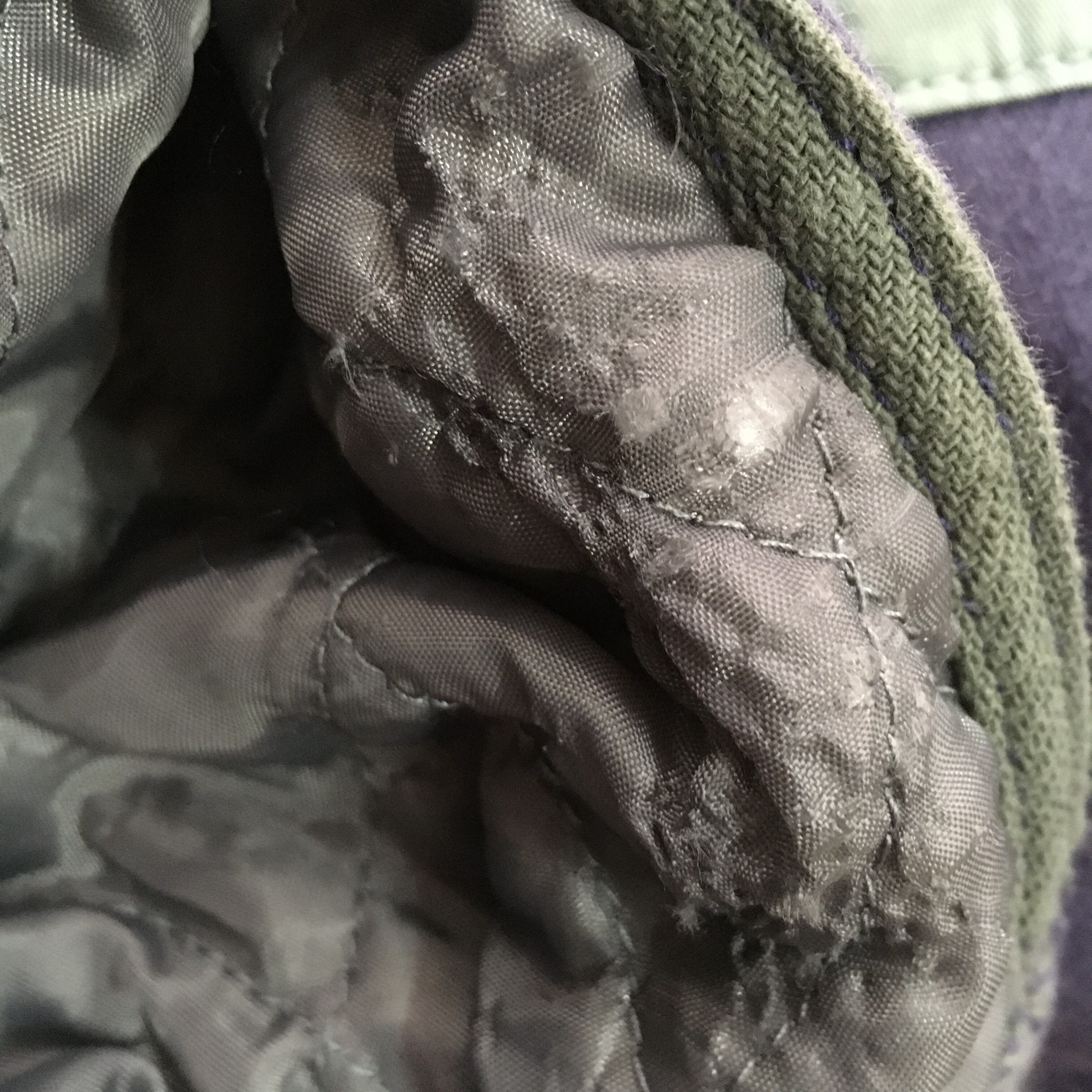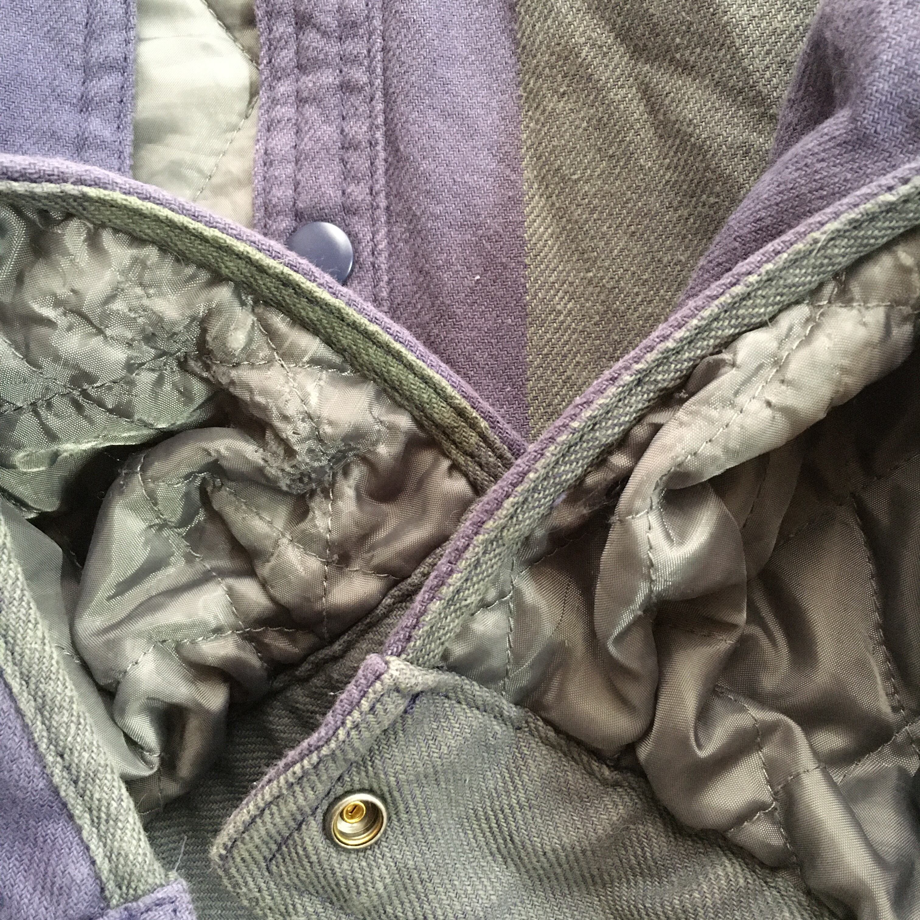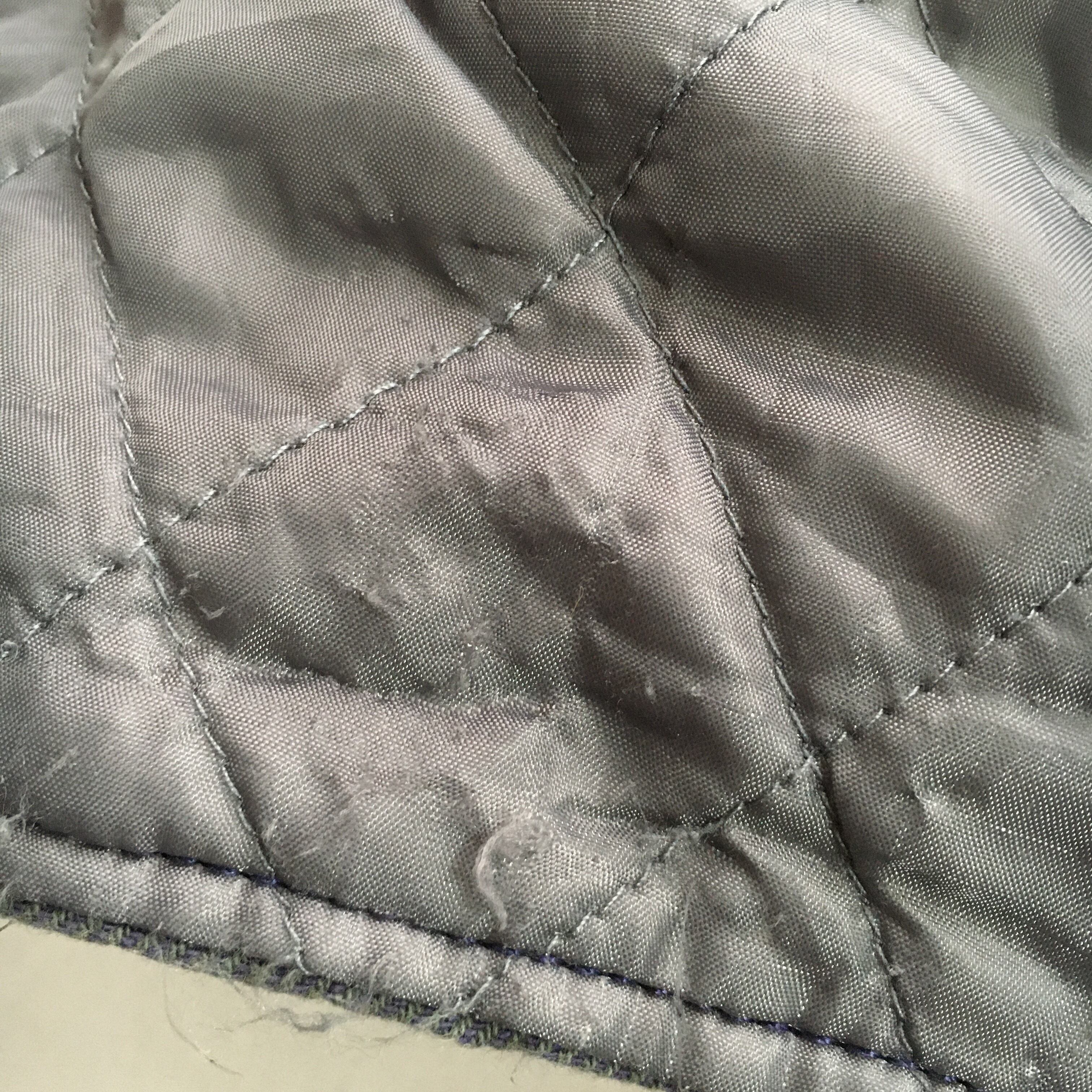 色落ち、薄い汚れ、ヨレ、裏地のダメージがあります。