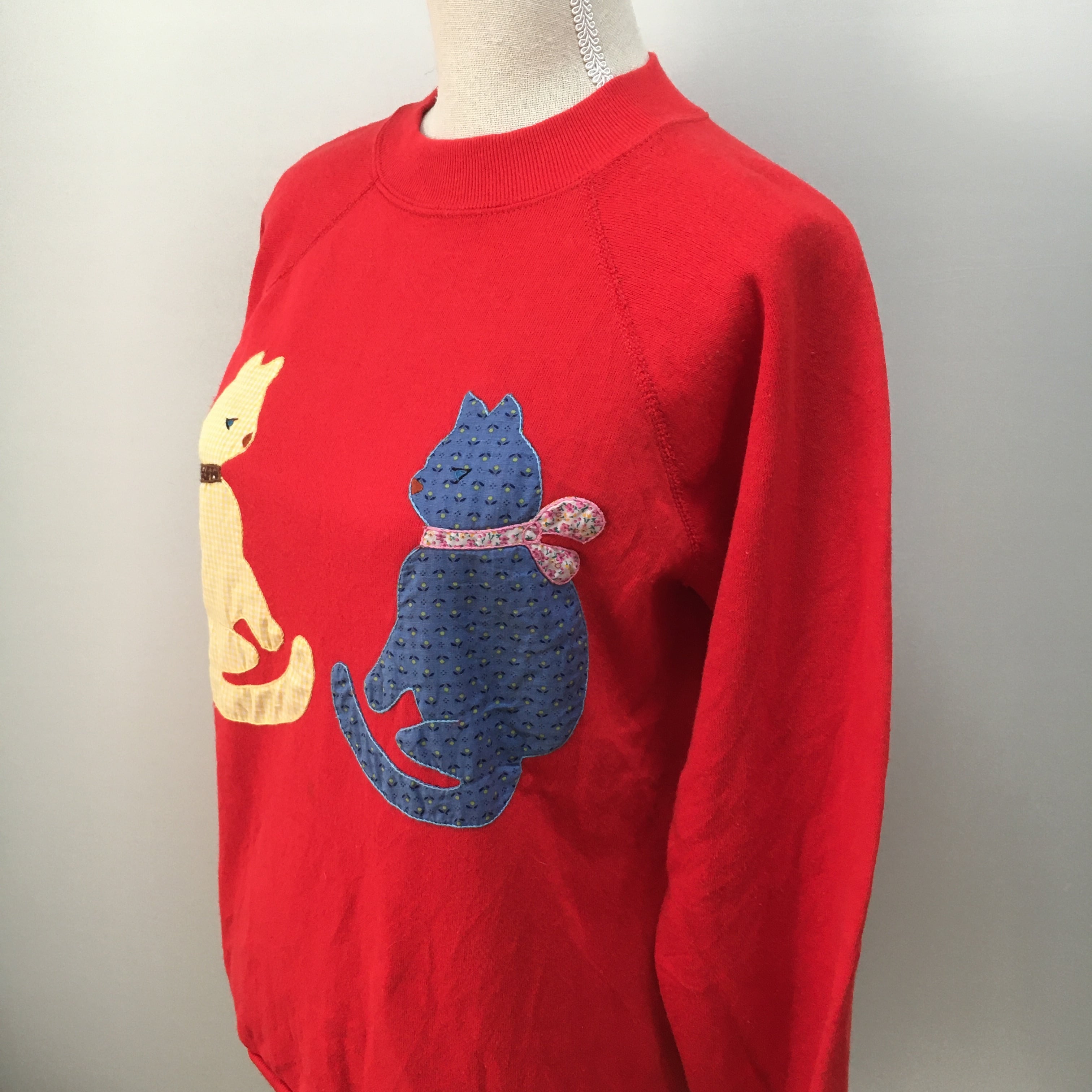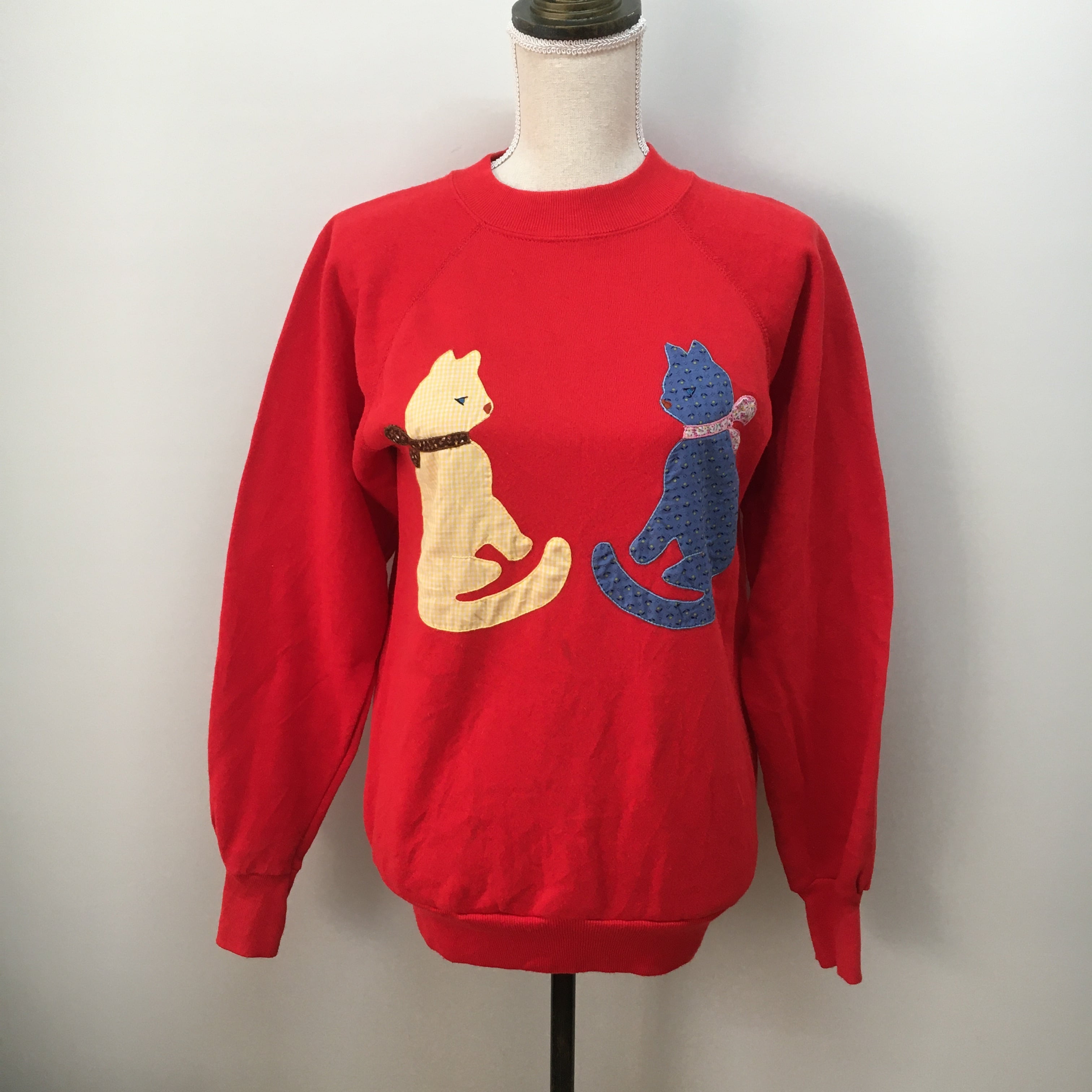 カラフルな2匹の猫と赤色のベースが