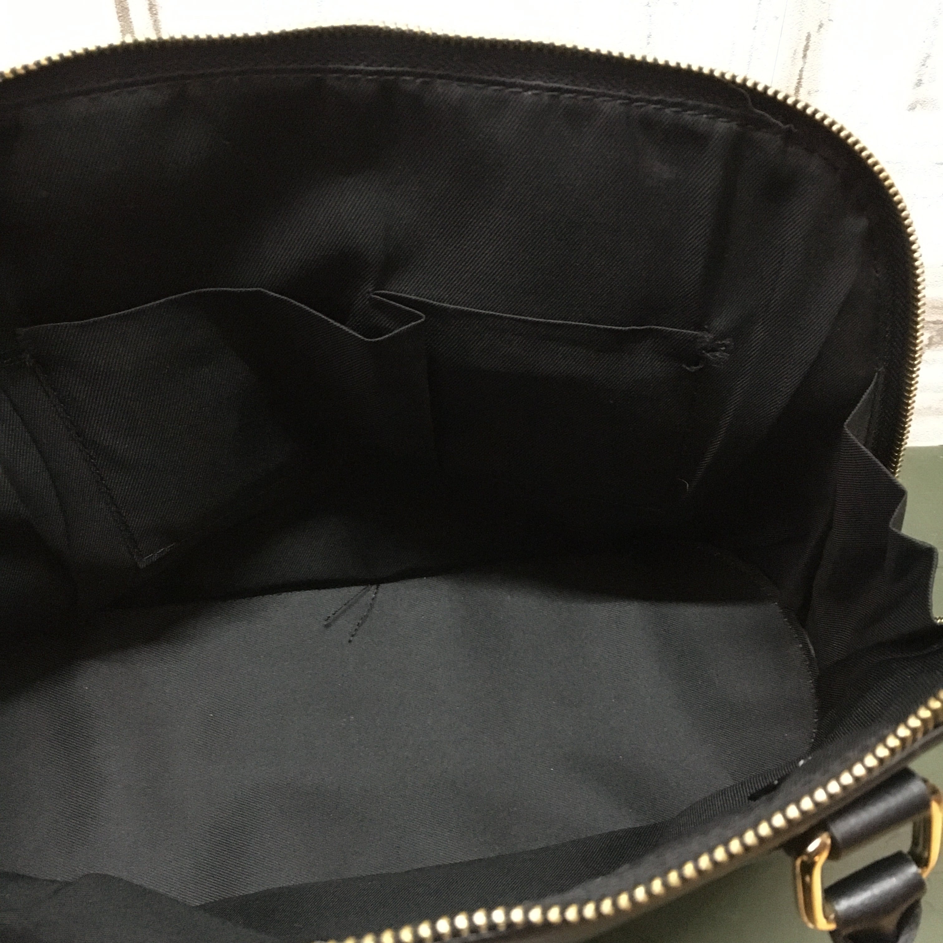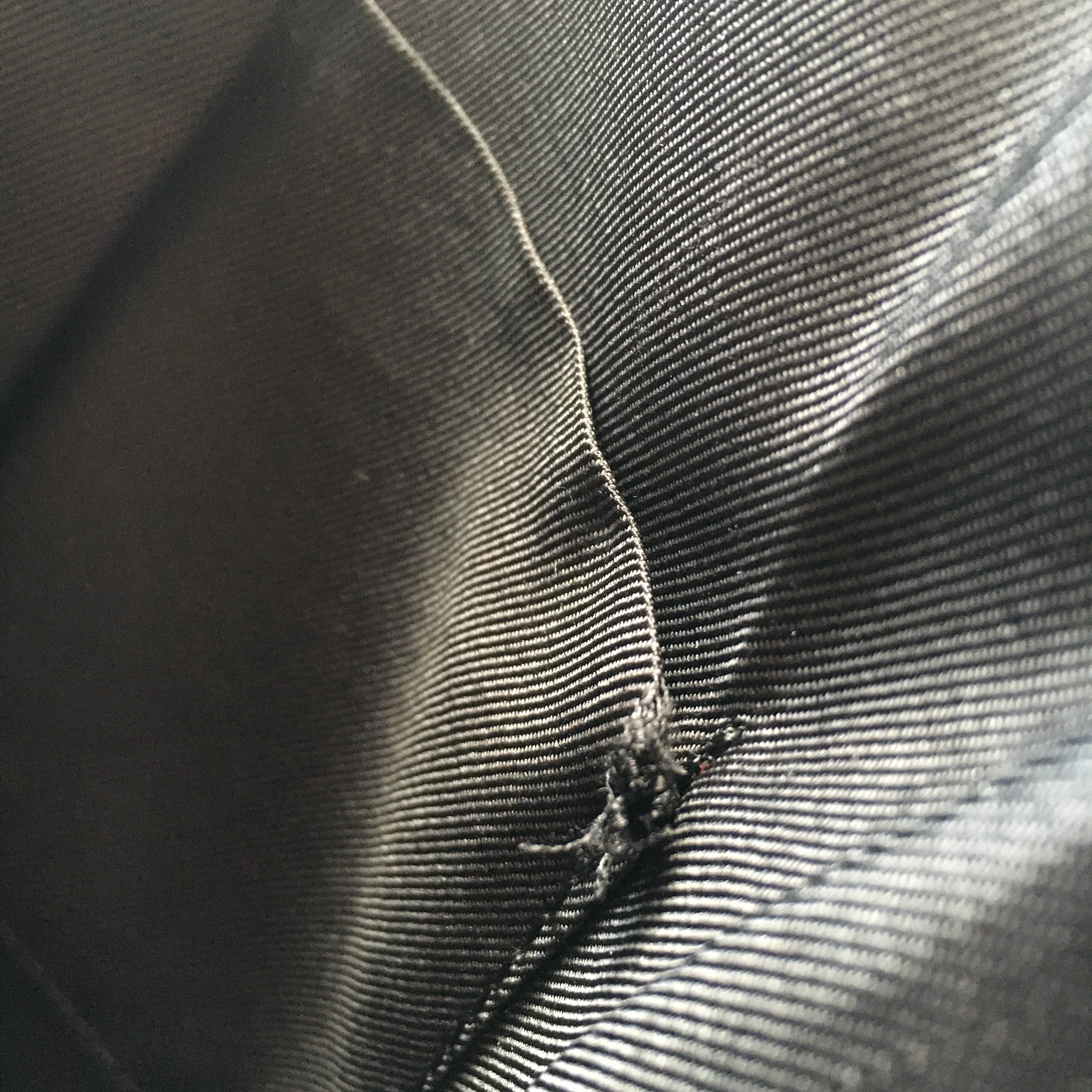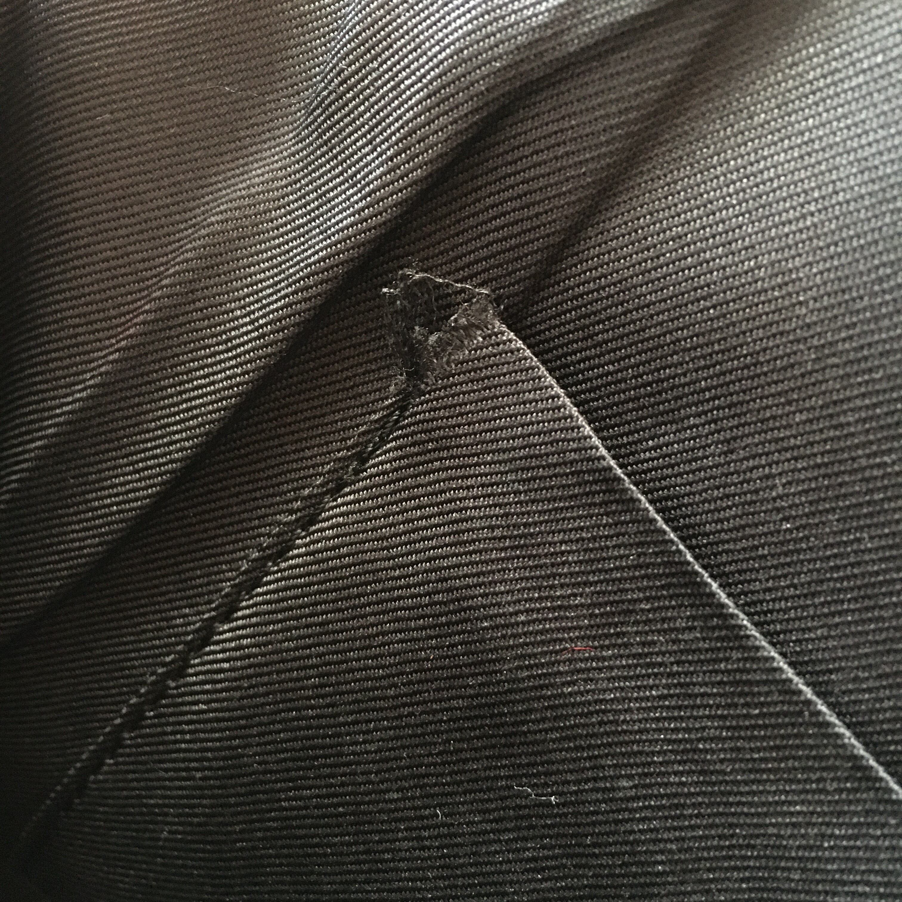 薄い汚れ、型付き、裏地のポケットのほつれがあります。