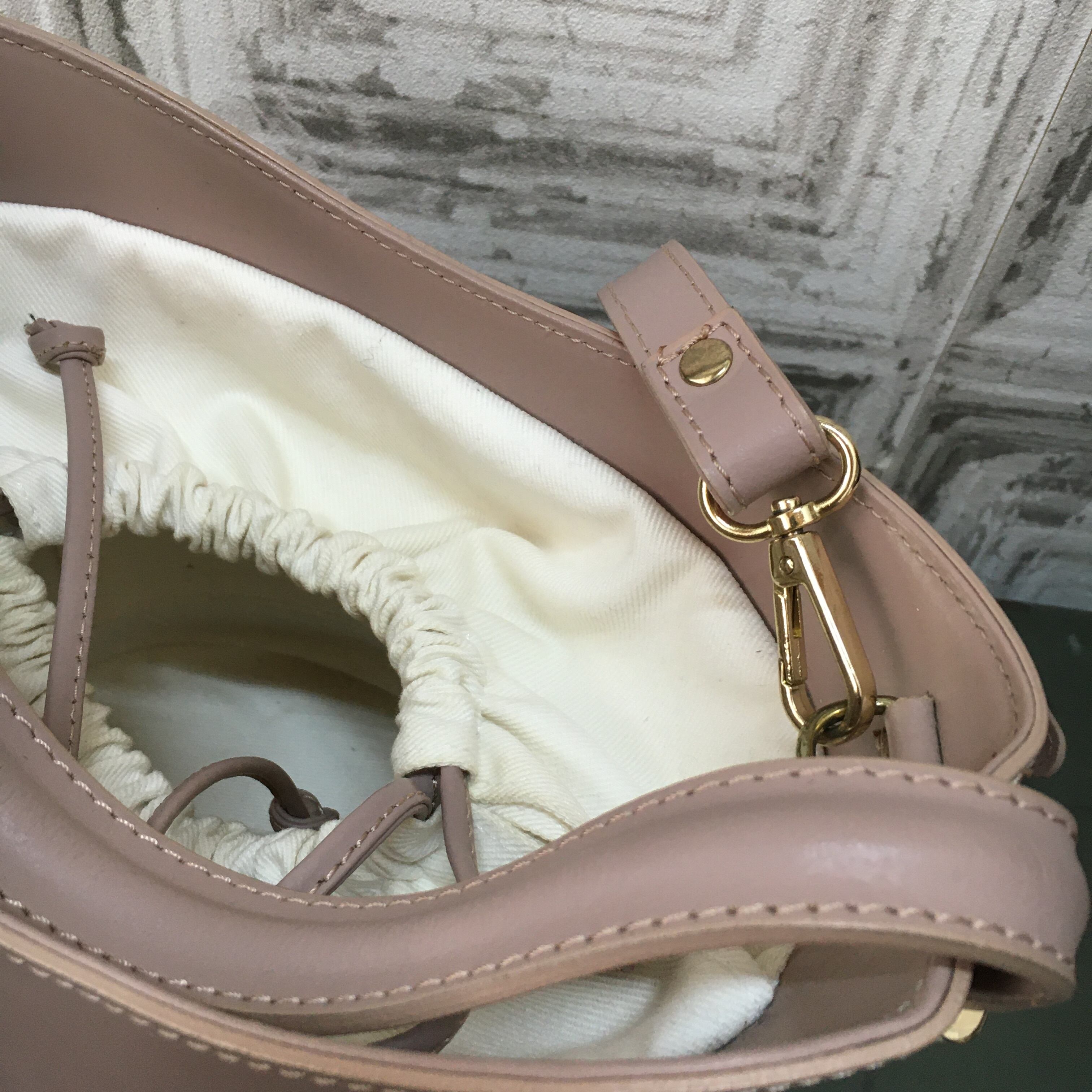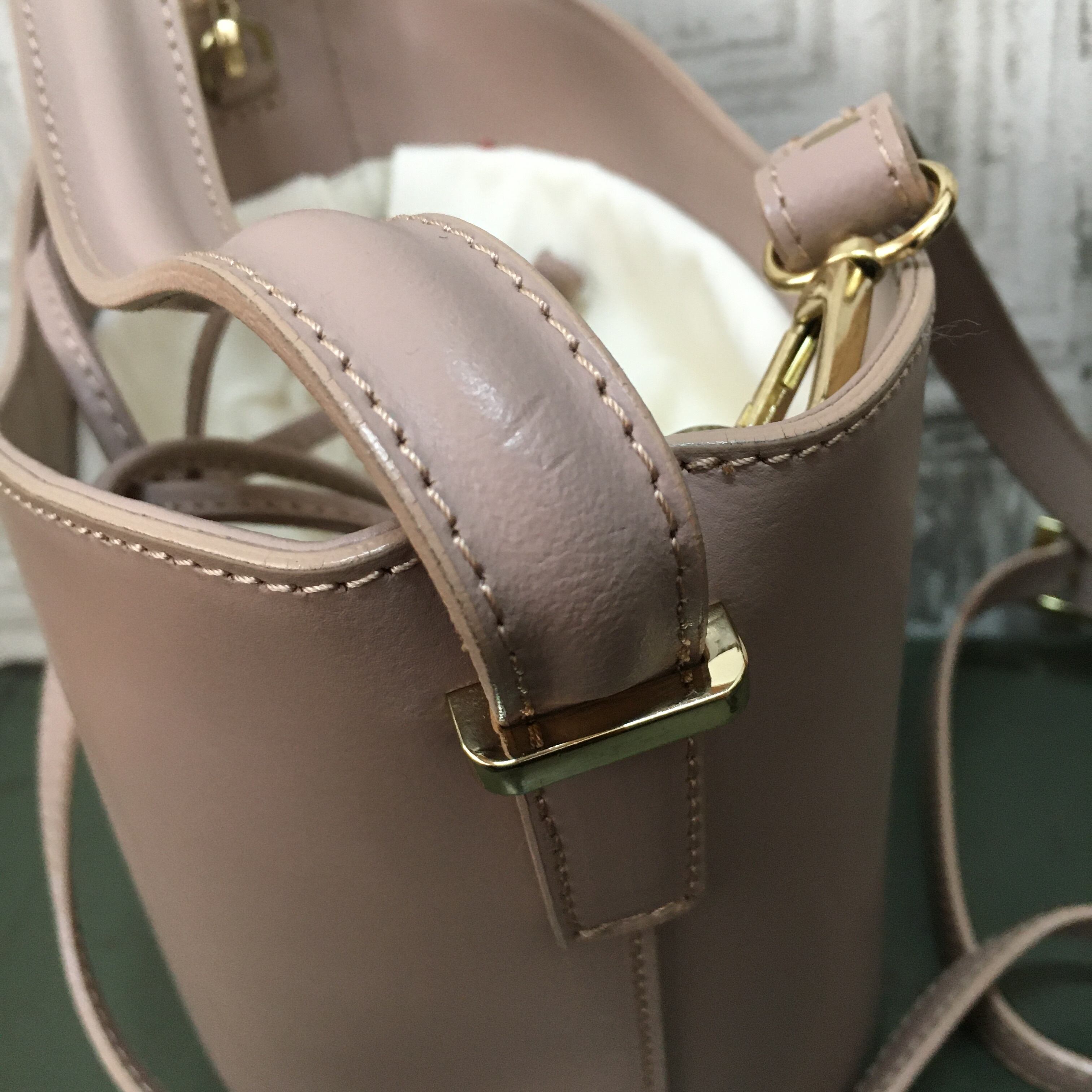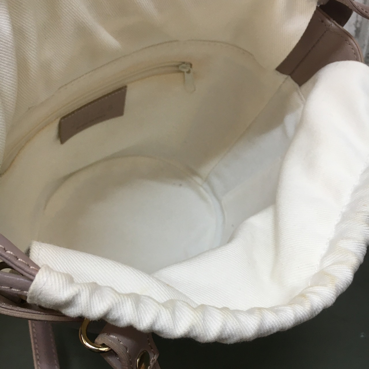 薄い汚れ、金具のキズ、くすみ、裏地の汚れが少々あります。