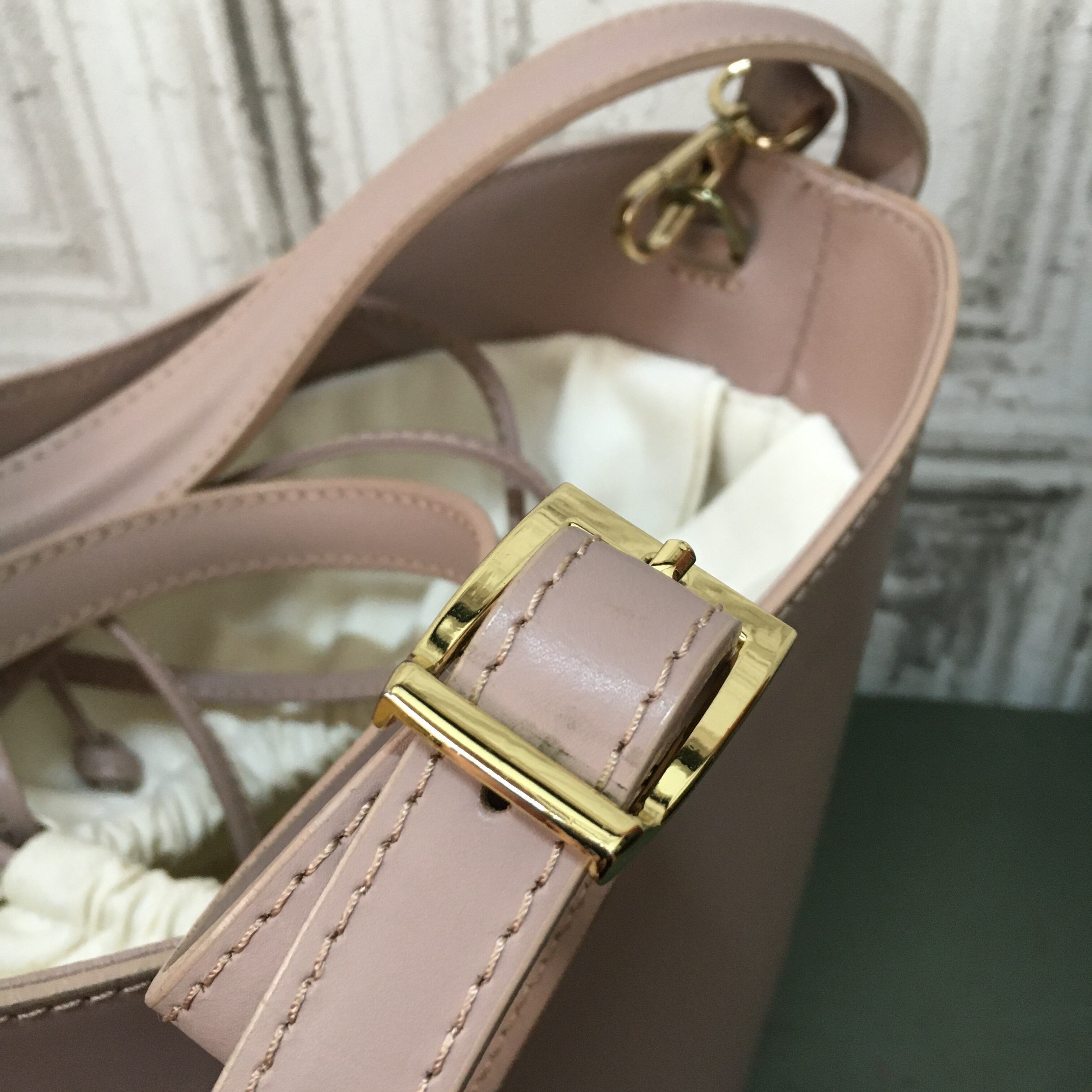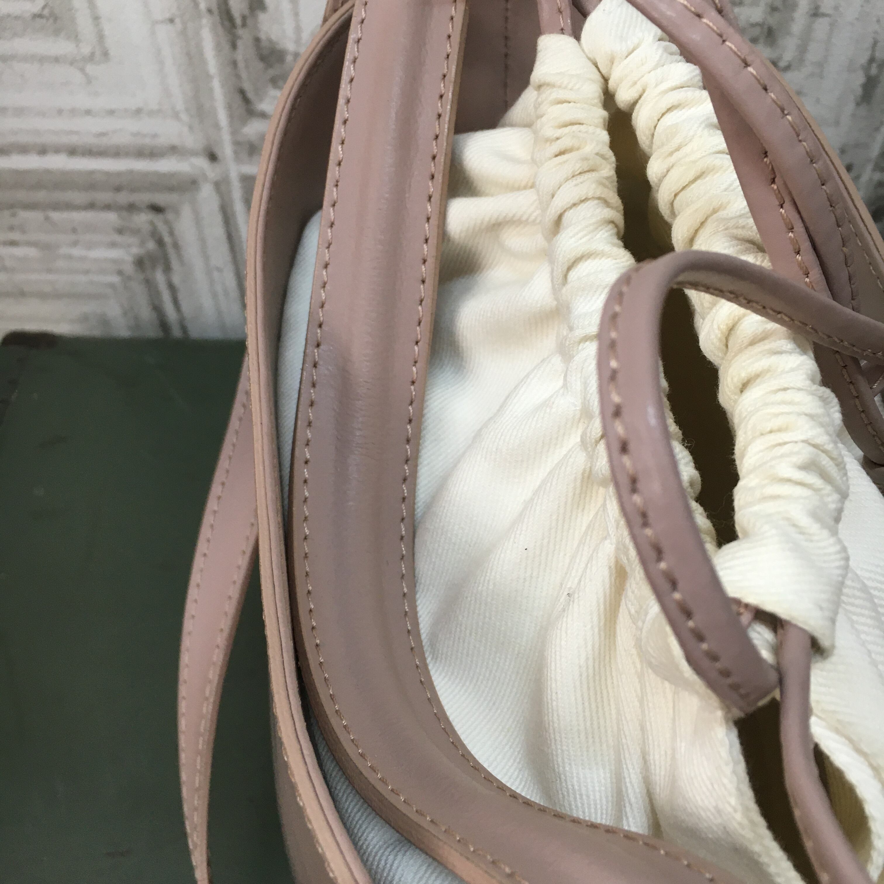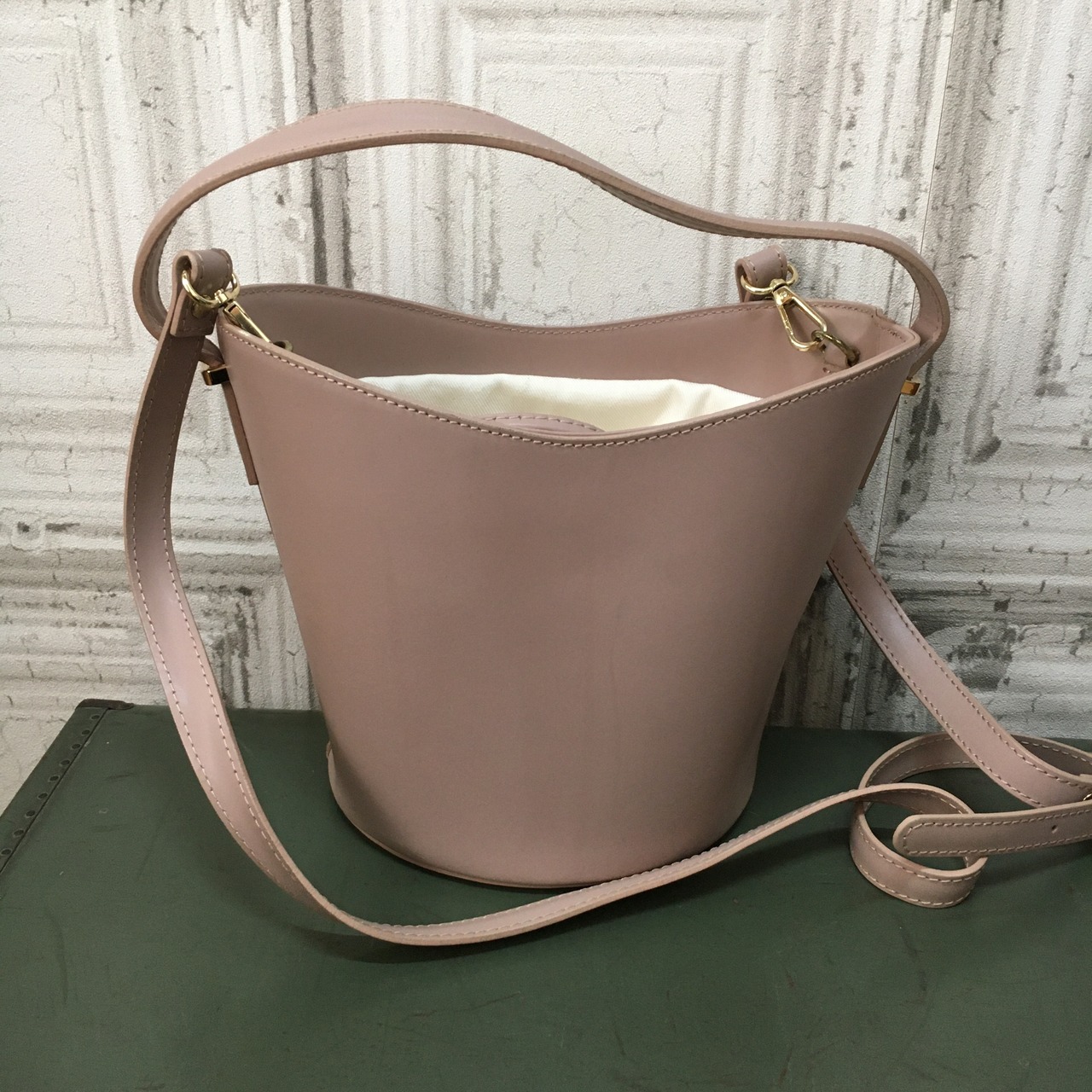 薄い汚れ、金具のキズ、くすみ、裏地の汚れが少々あります。