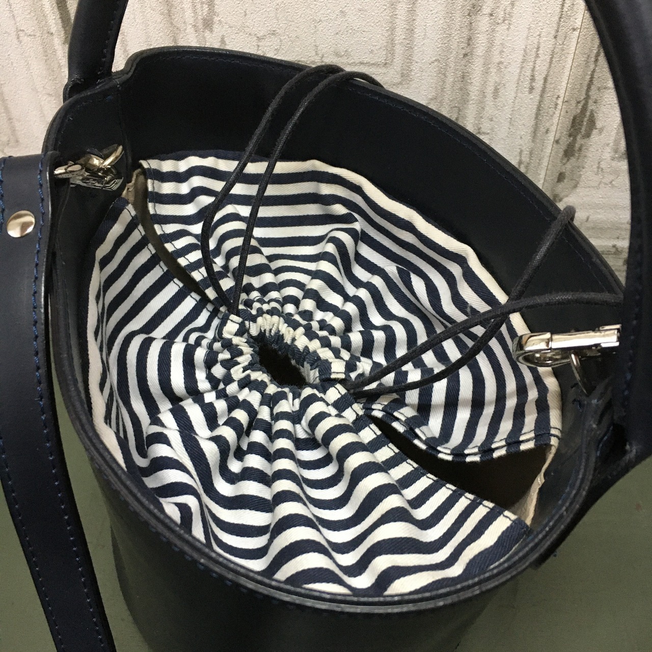 巾着部分がボーダー柄は少し珍しいです。