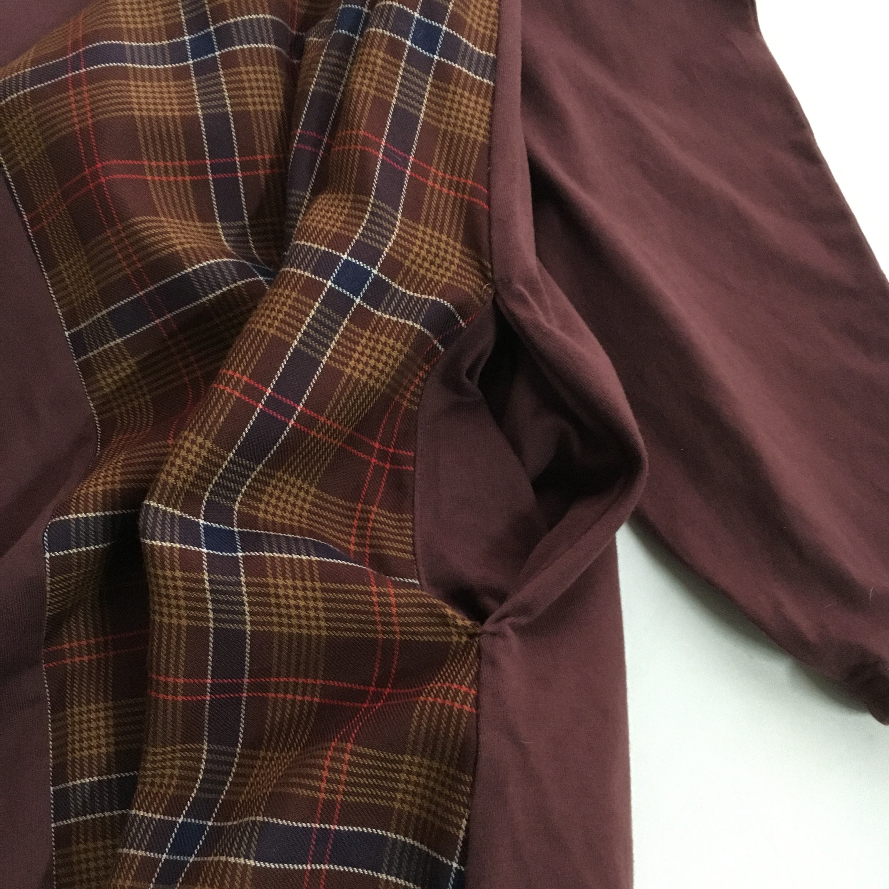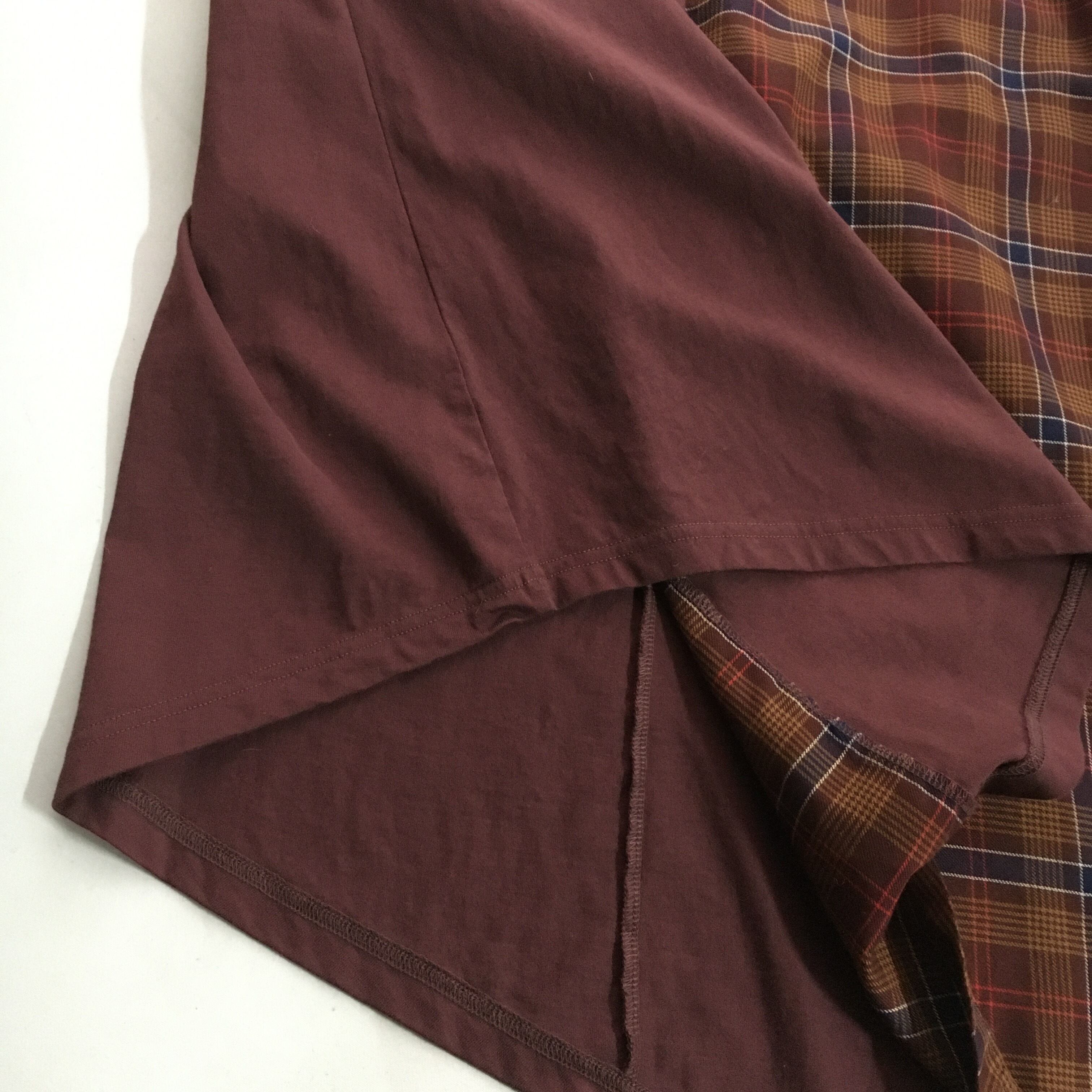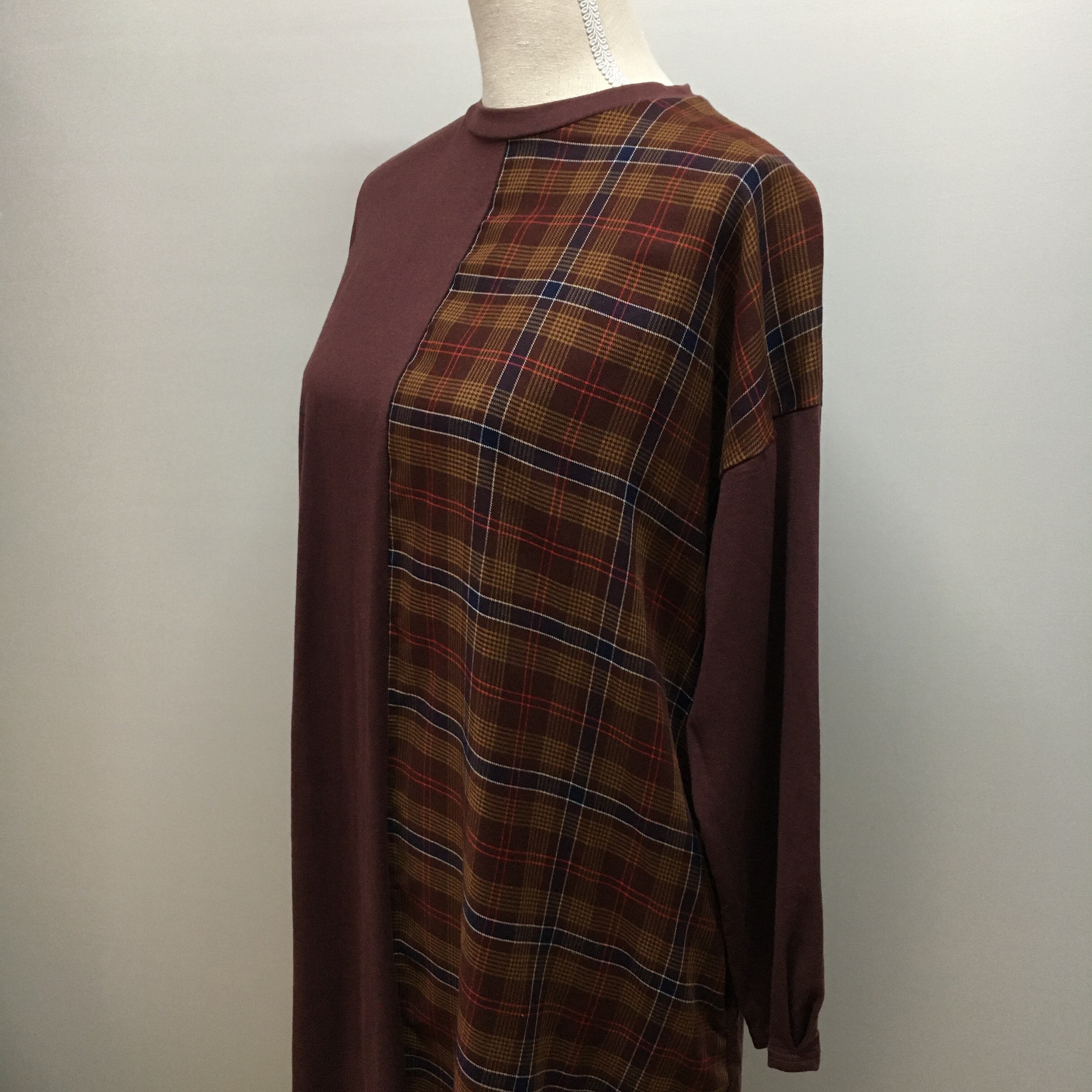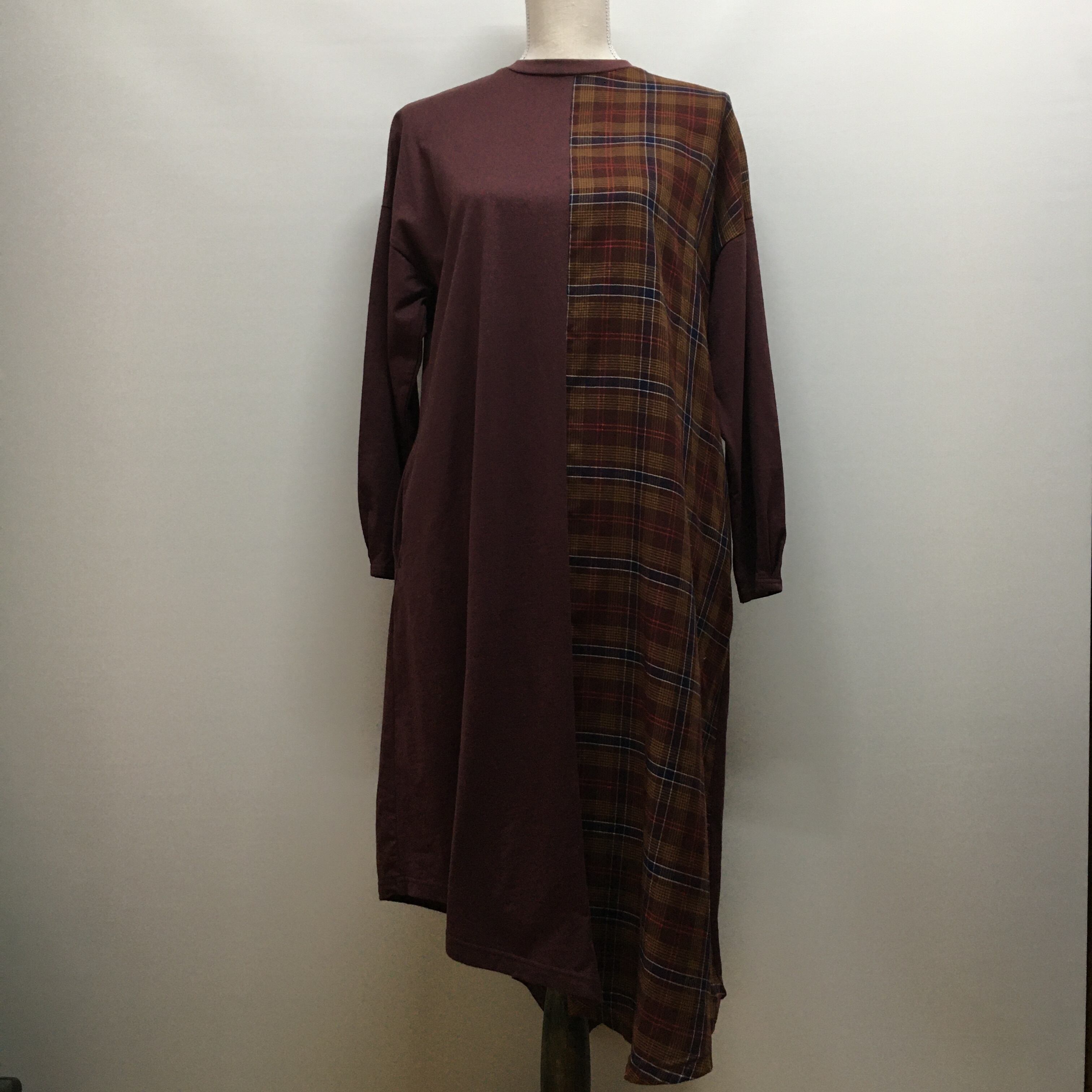 チェック柄、アシンメトリーのデザインです。