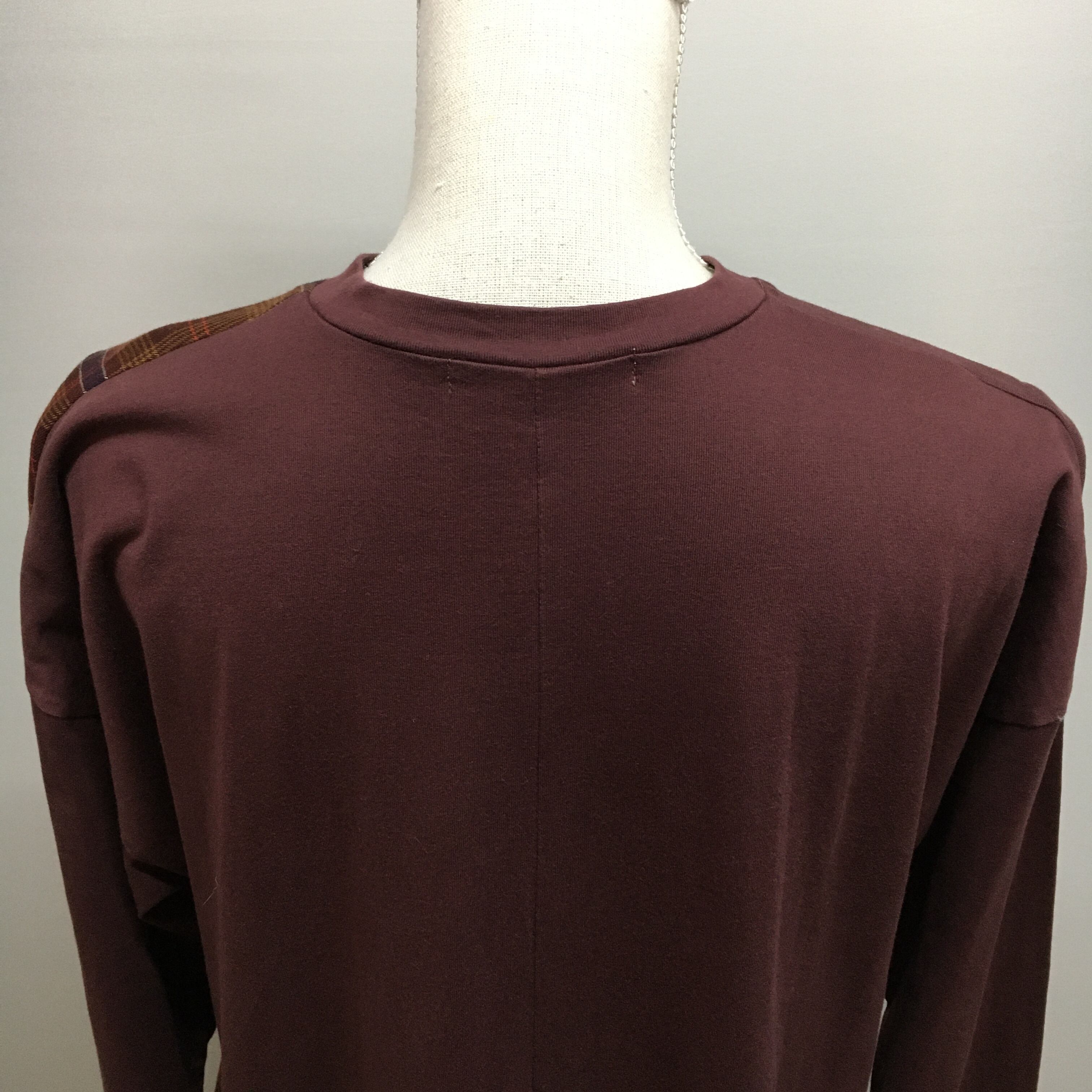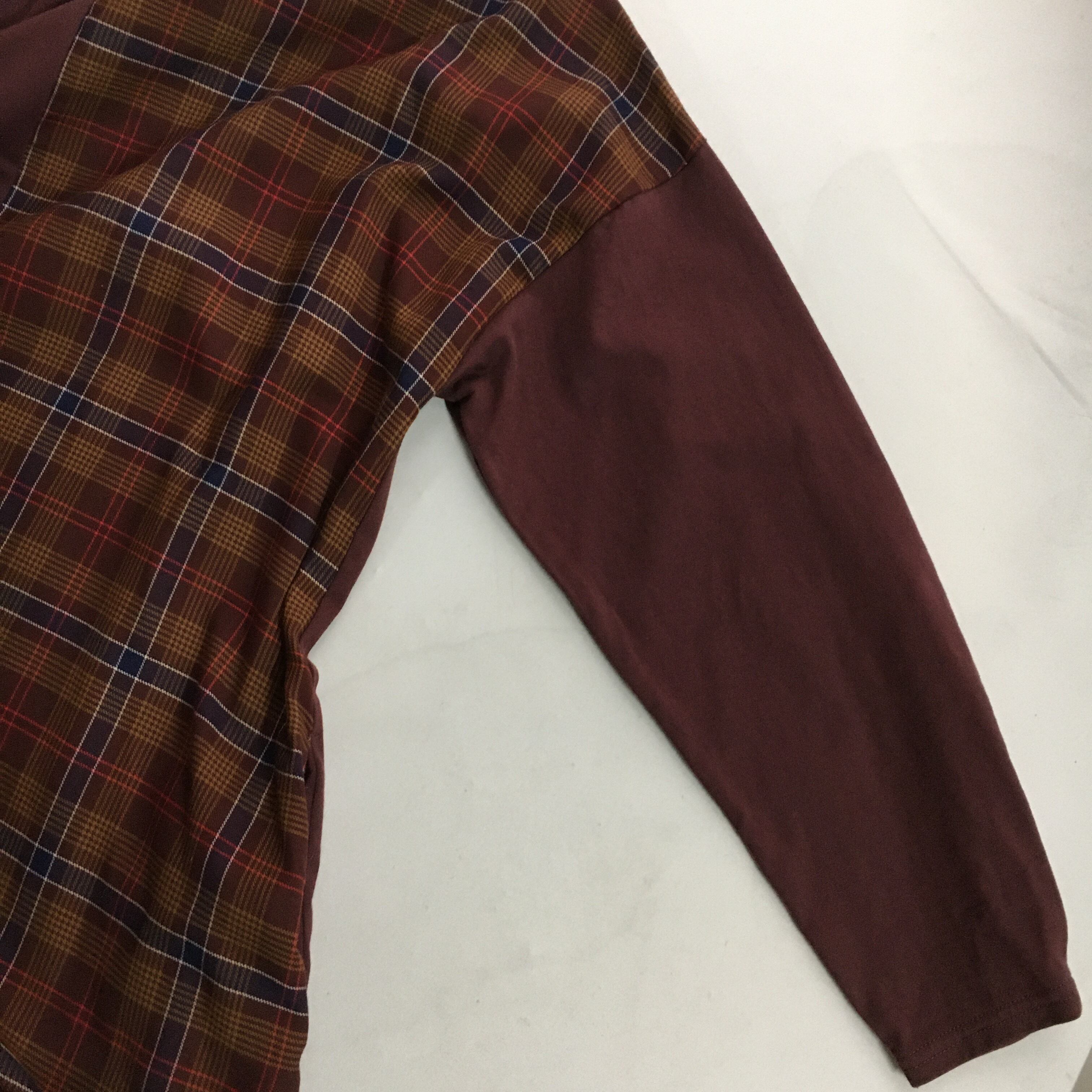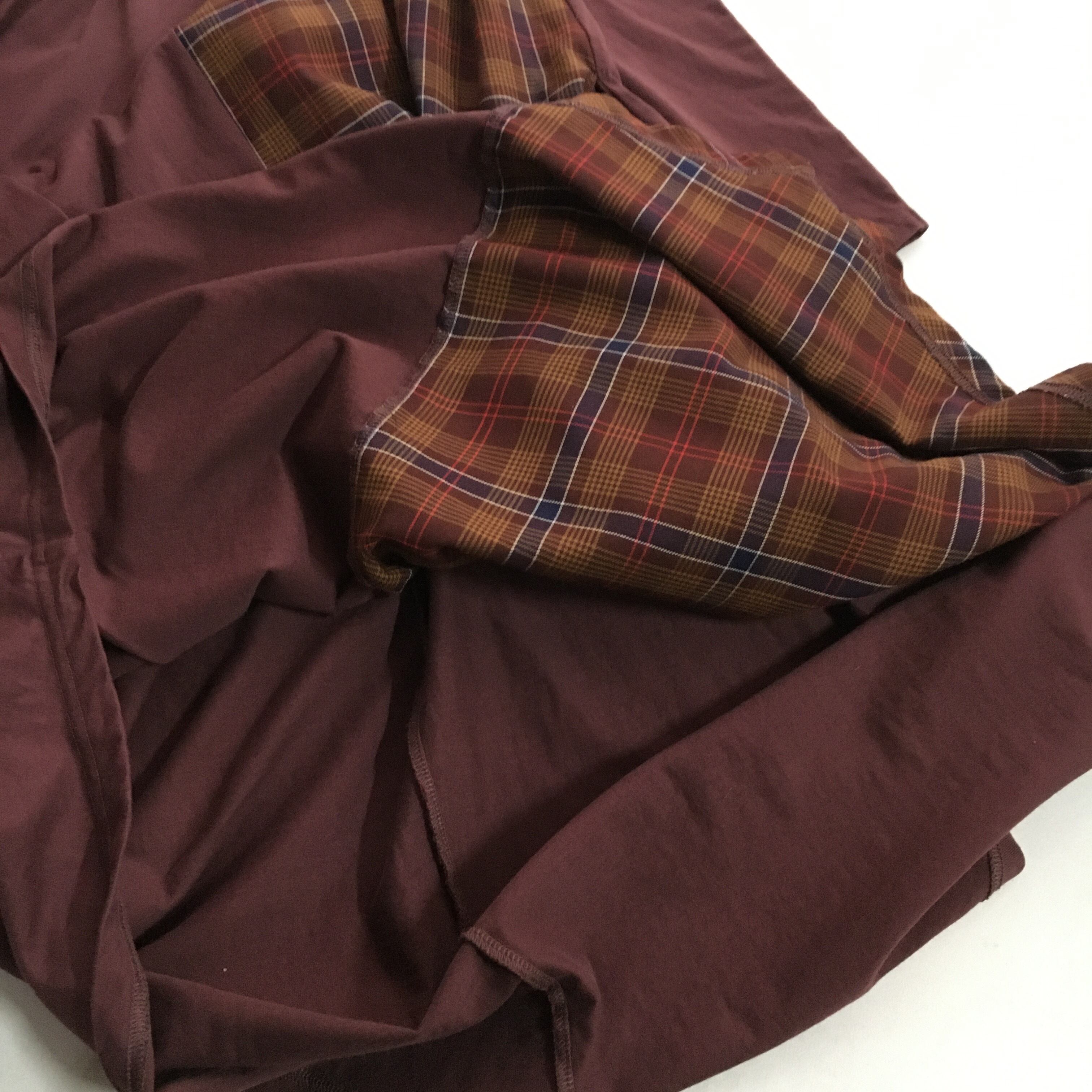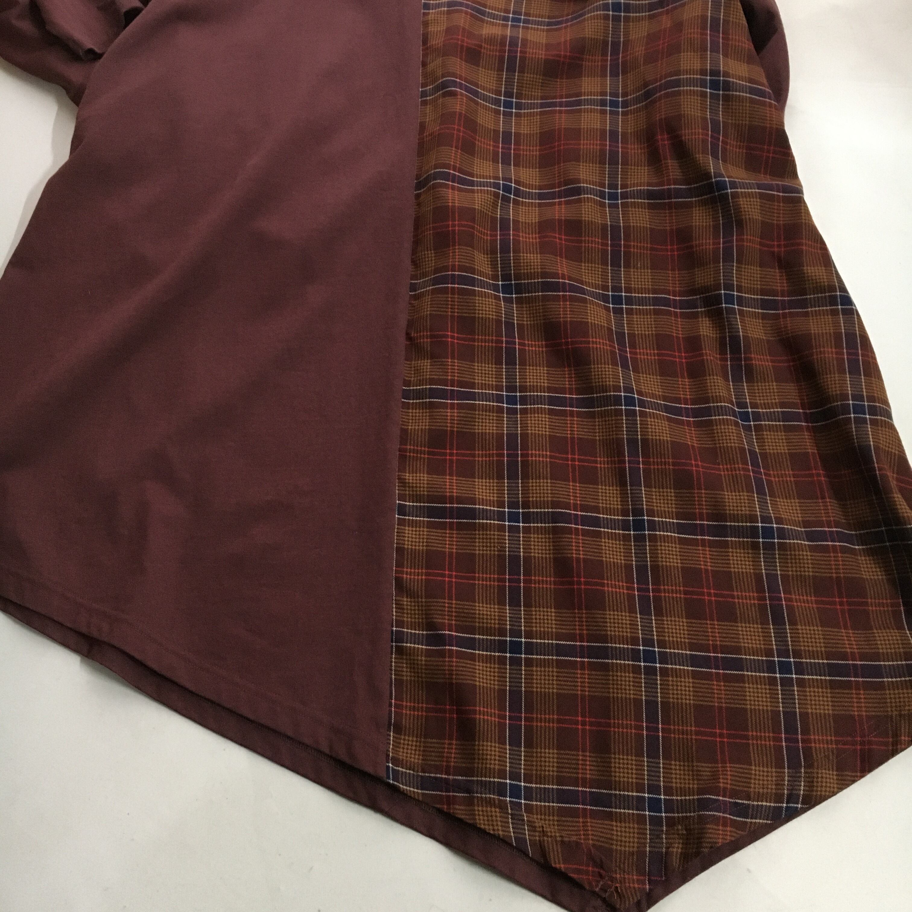チェック柄、アシンメトリーのデザインです。
