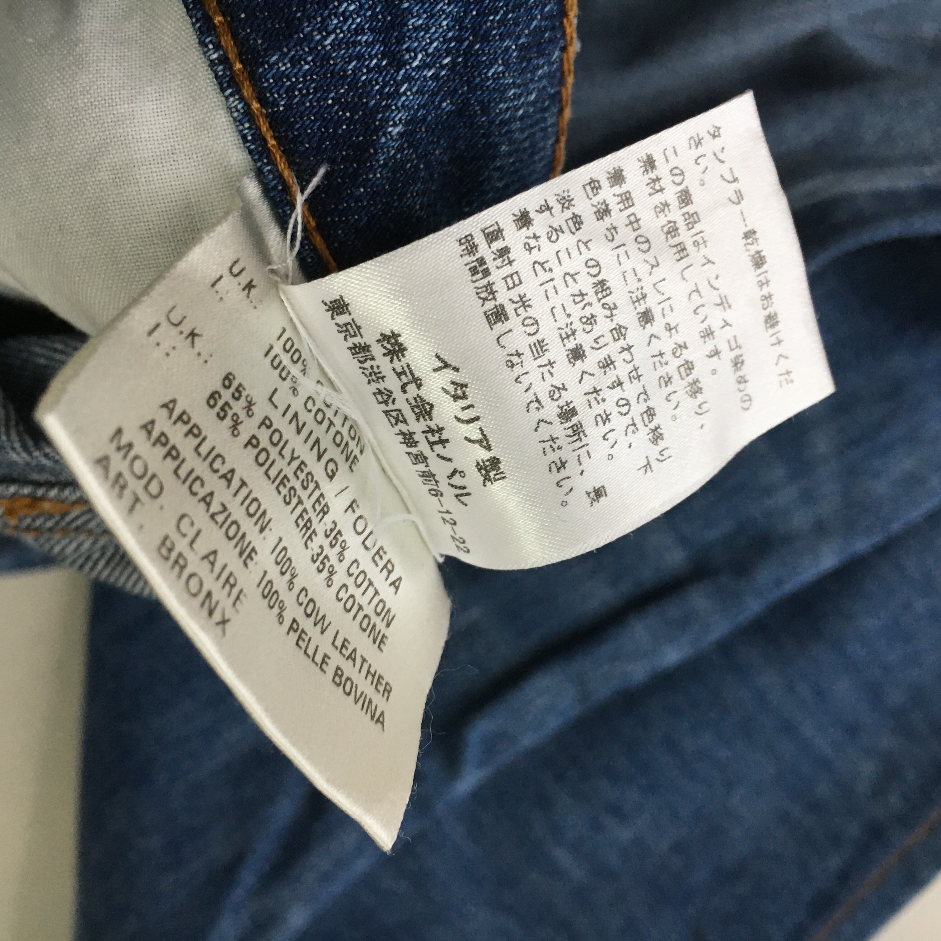 裏地:ポリエステル65%、綿35%