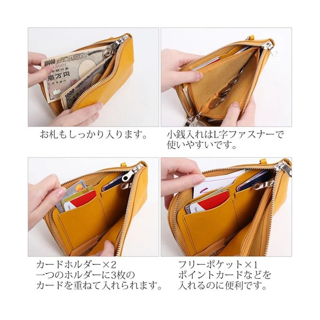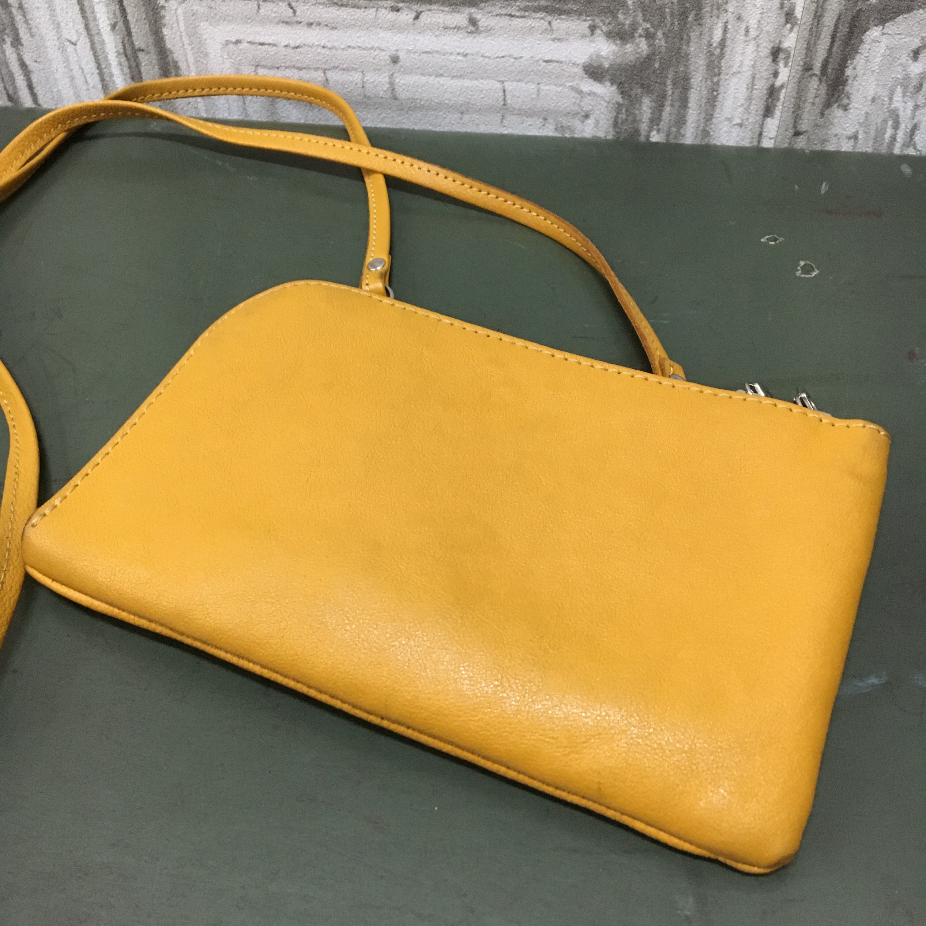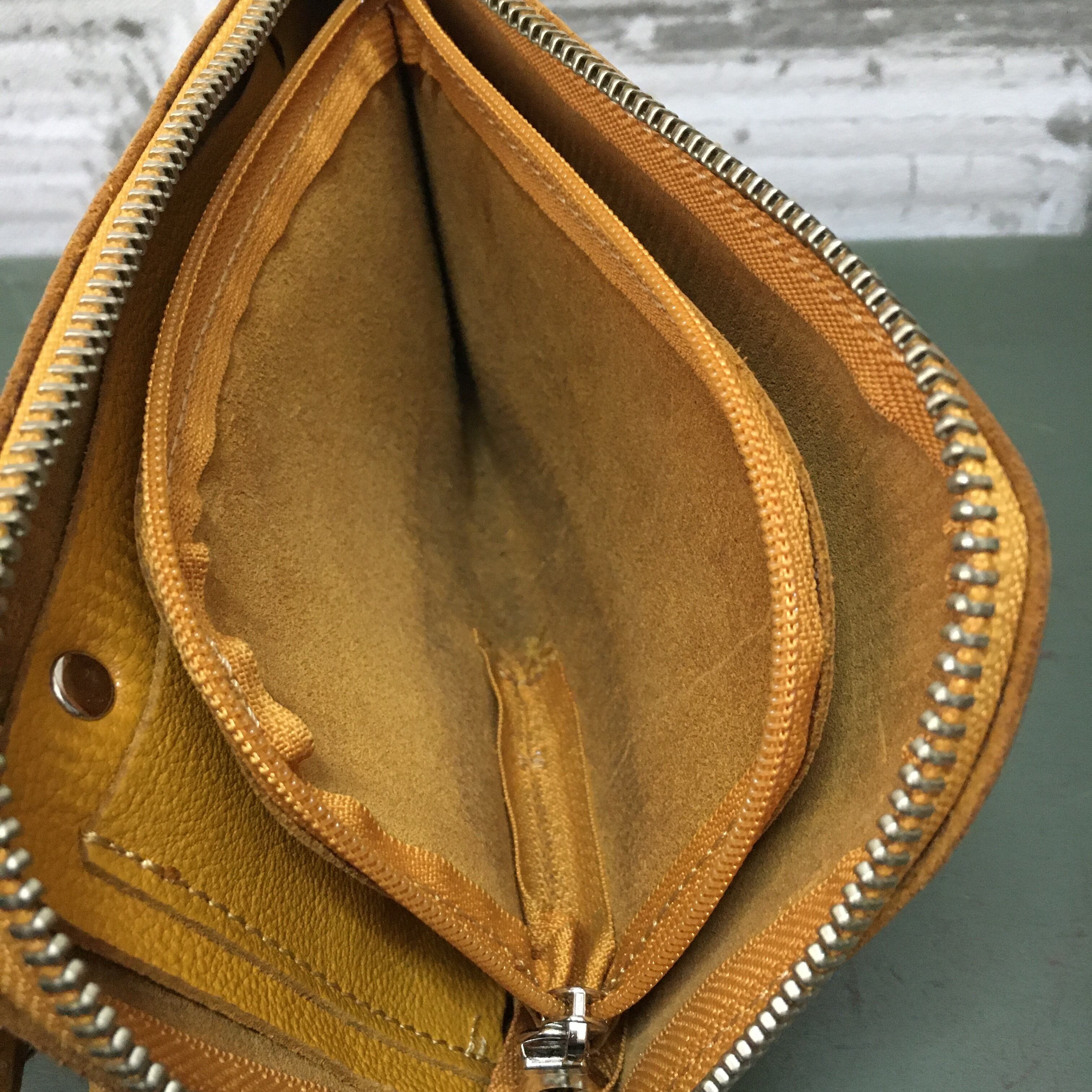 お財布ポシェットのカラーがマスタードです。