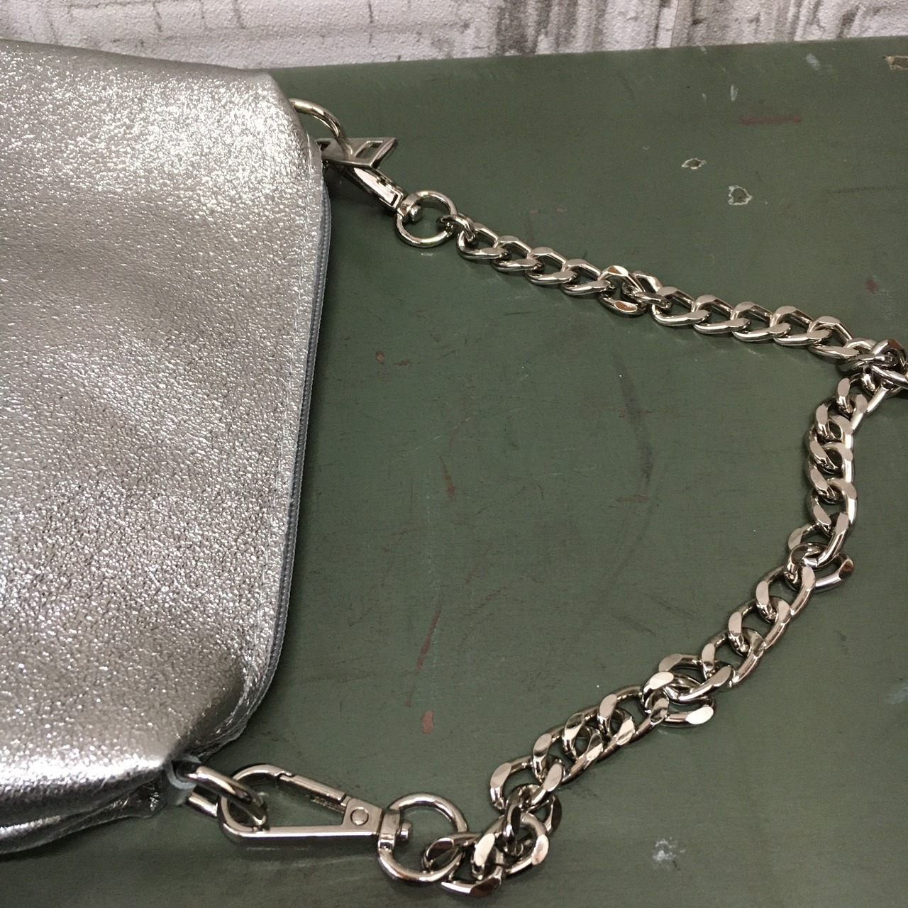 ポーチは幅19㎝、高さ14㎝、まち4㎝、チェーン43㎝です。