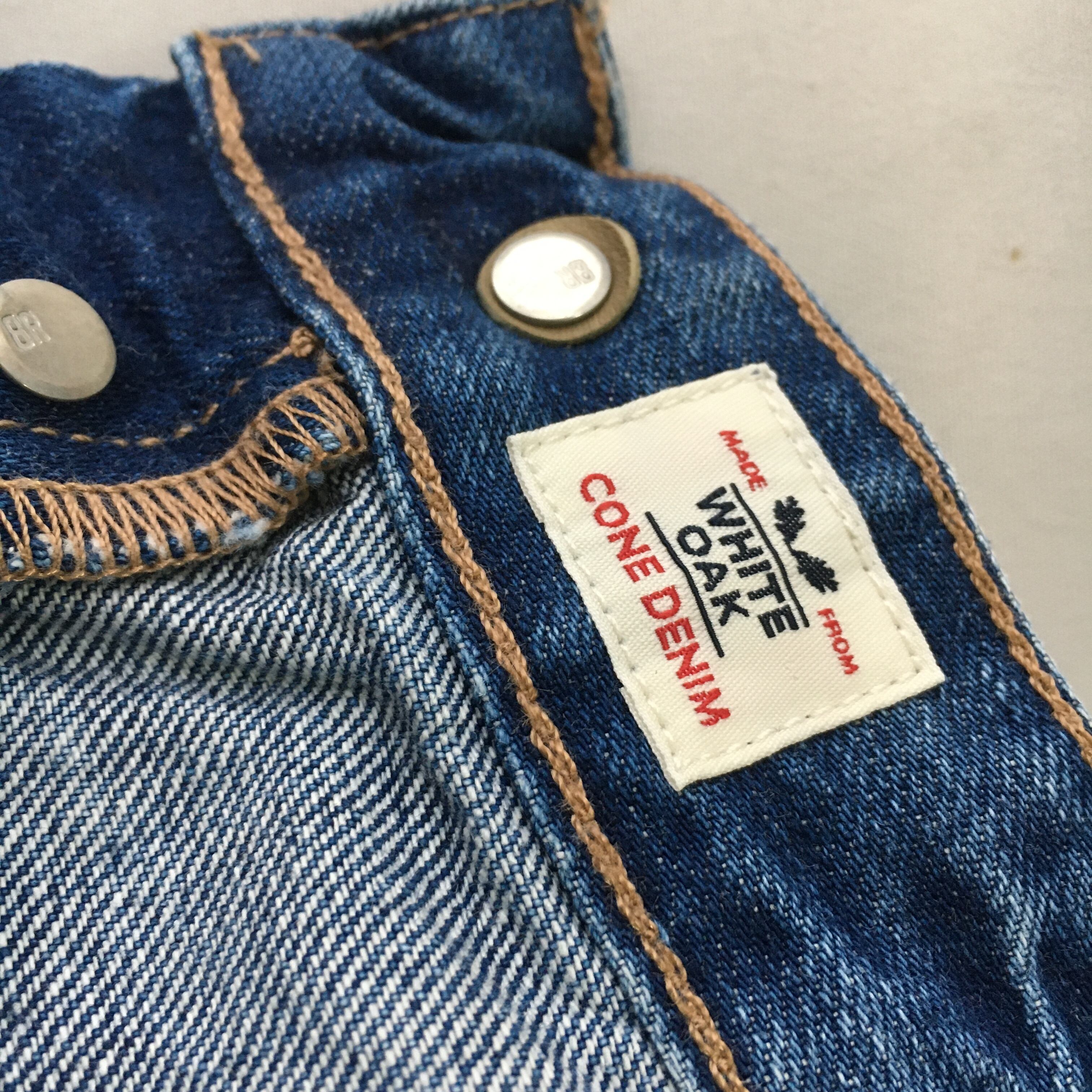 「WHITE OAK」「CONE DENIM」生地です。