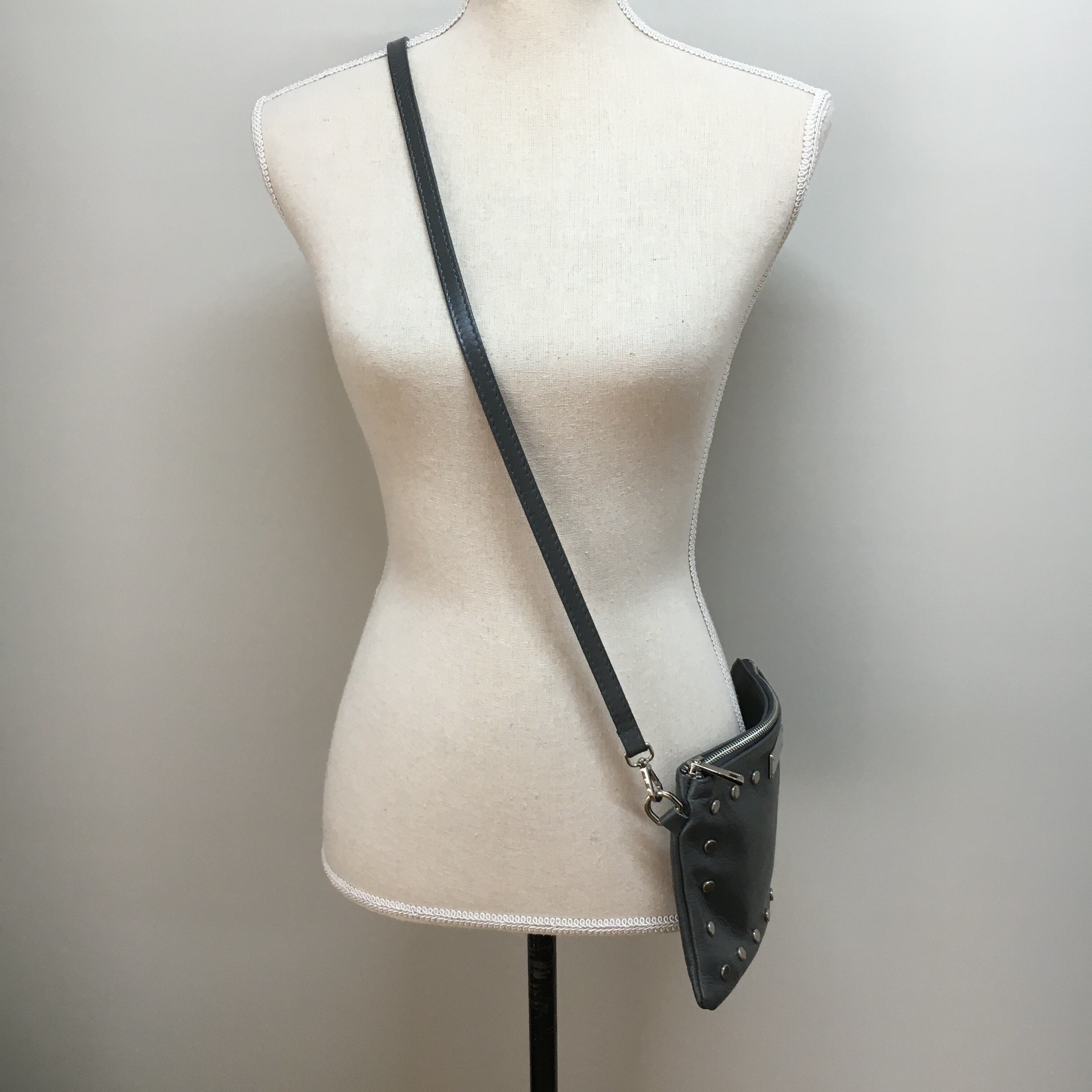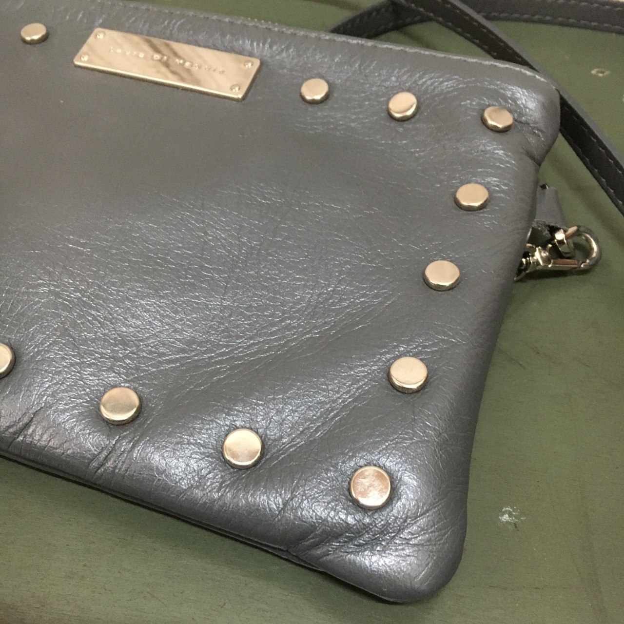 スタッズ付きのシンプルなバッグです。