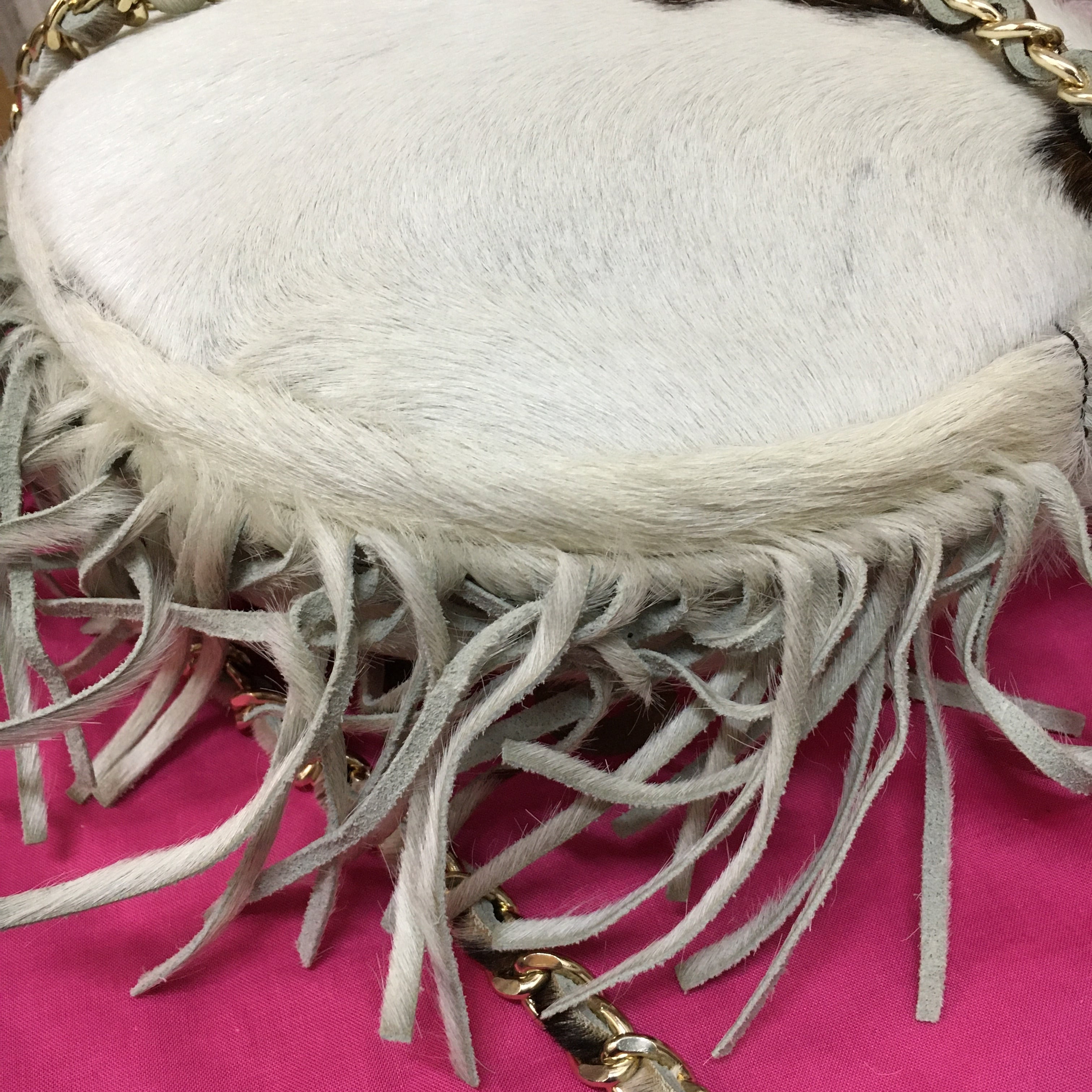 薄い汚れ、ハラコの抜け、フリンジのヨレ