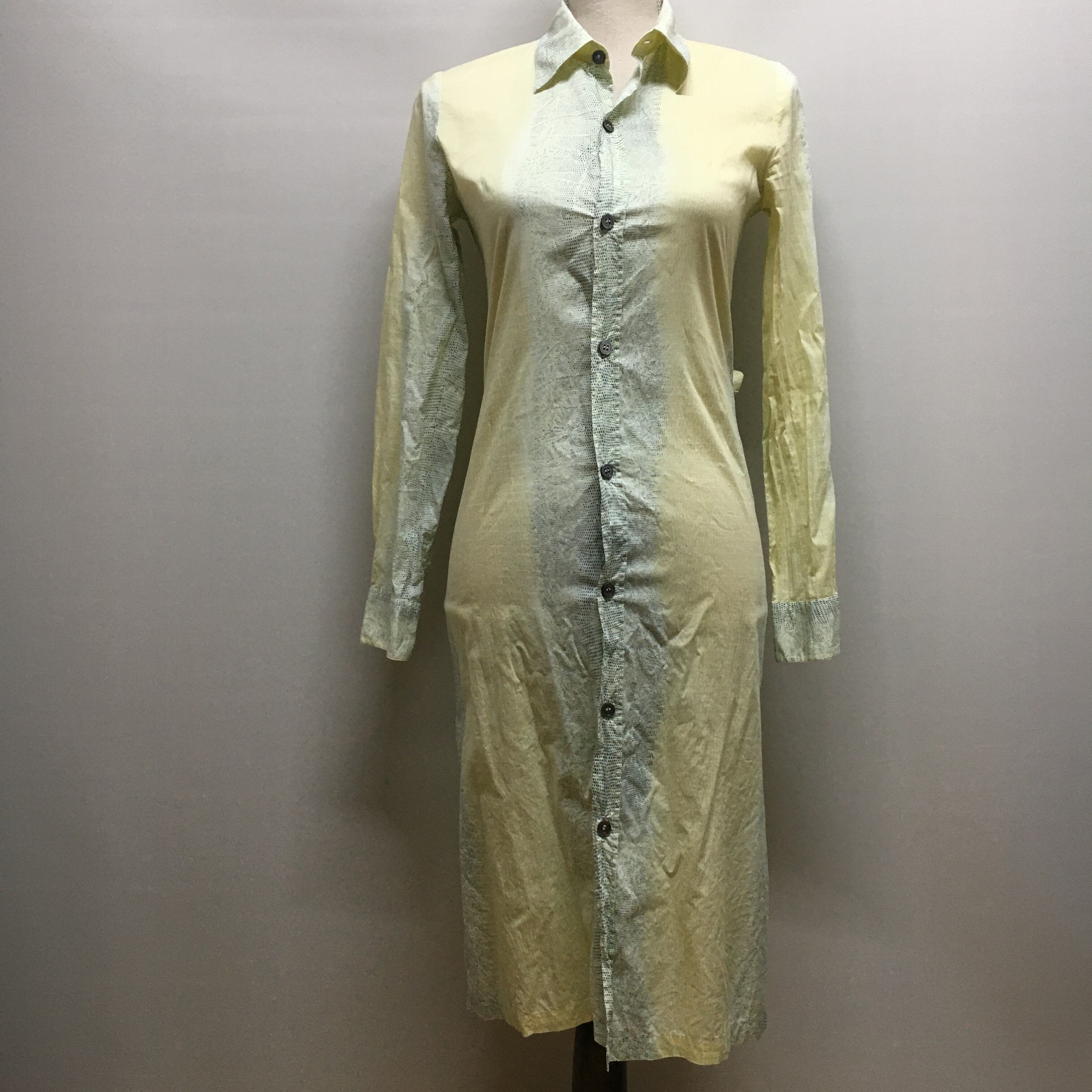薄い汚れ、ヨレ、シワ、ボタンのほつれが少々あります。